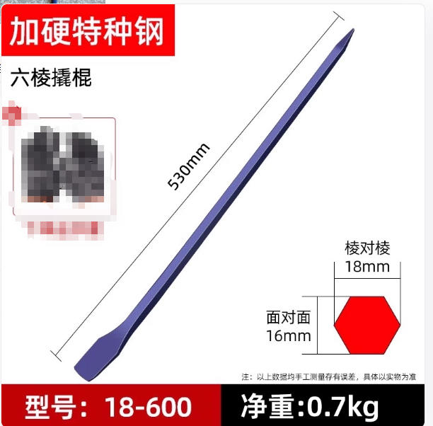 六棱撬棍特种钢工业级钢钎撬棒工具扁加粗重型多功能撬杠六棱撬棍车用